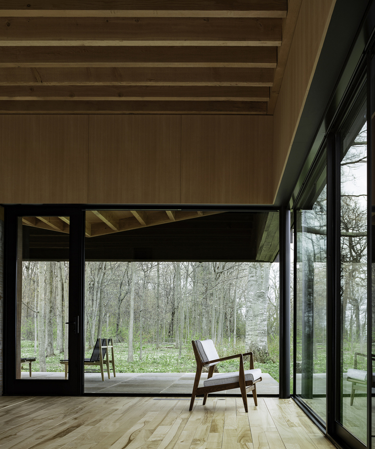 密歇根州特拉弗斯城的EnvironmentArchitects (AOR)設計了一棟棲息在木從中的