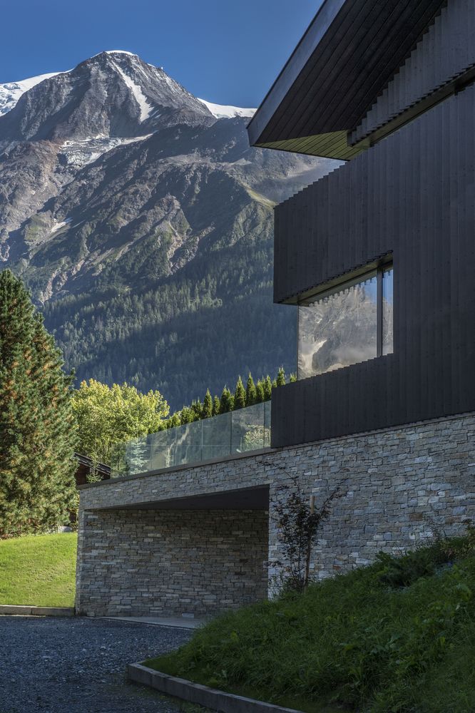 這個(gè)位置享有勃朗峰天際線(xiàn)壯麗的景色。這處雄偉的景觀視野是設(shè)計(jì)的出發(fā)點(diǎn)。