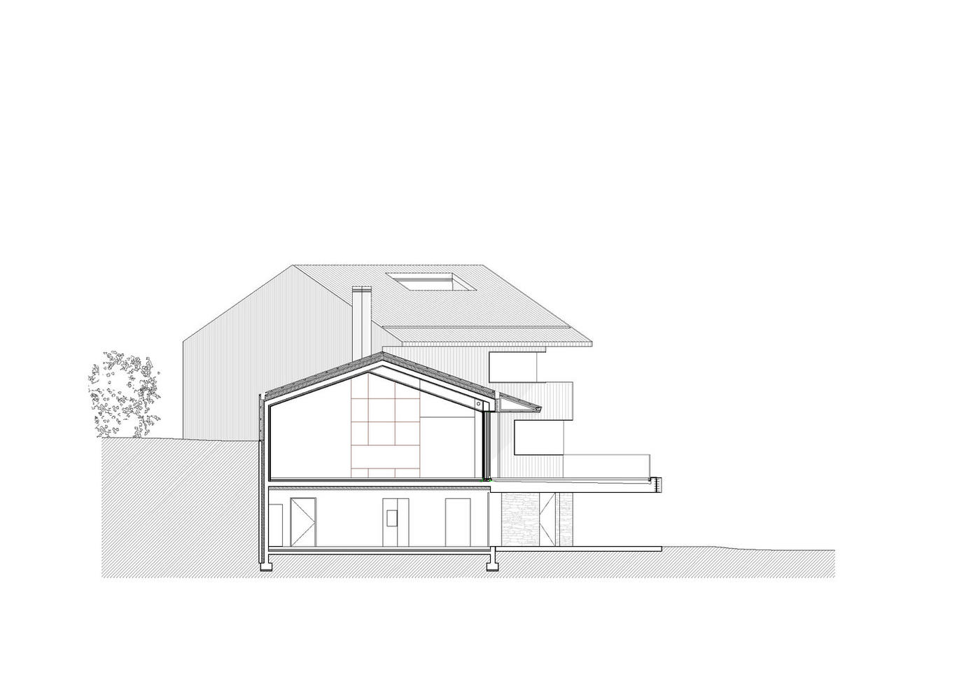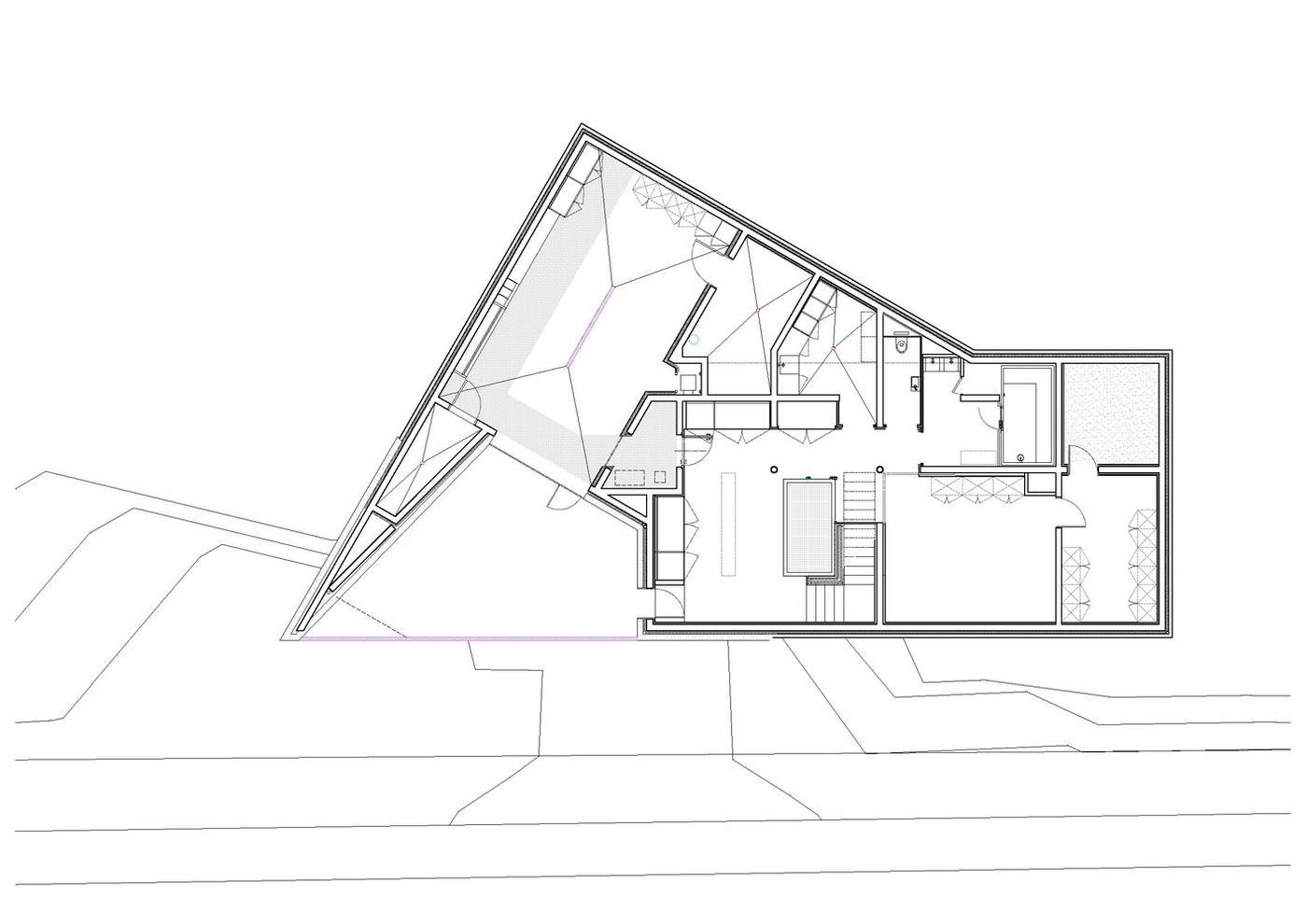 應(yīng)老客戶(hù)的要求,建筑師在夏蒙尼山谷設(shè)計(jì)了一座新的小屋,并監(jiān)督了它的建造過(guò)程。 其場(chǎng)地位于50年代建成的住宅區(qū)內(nèi)。從場(chǎng)地原始的總體規(guī)劃中可以看出這里以前也是一座小屋。