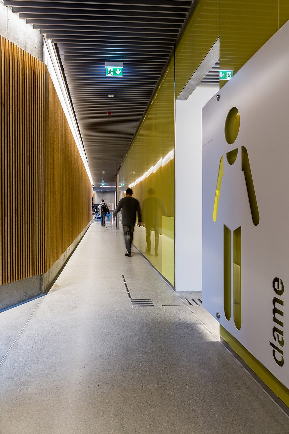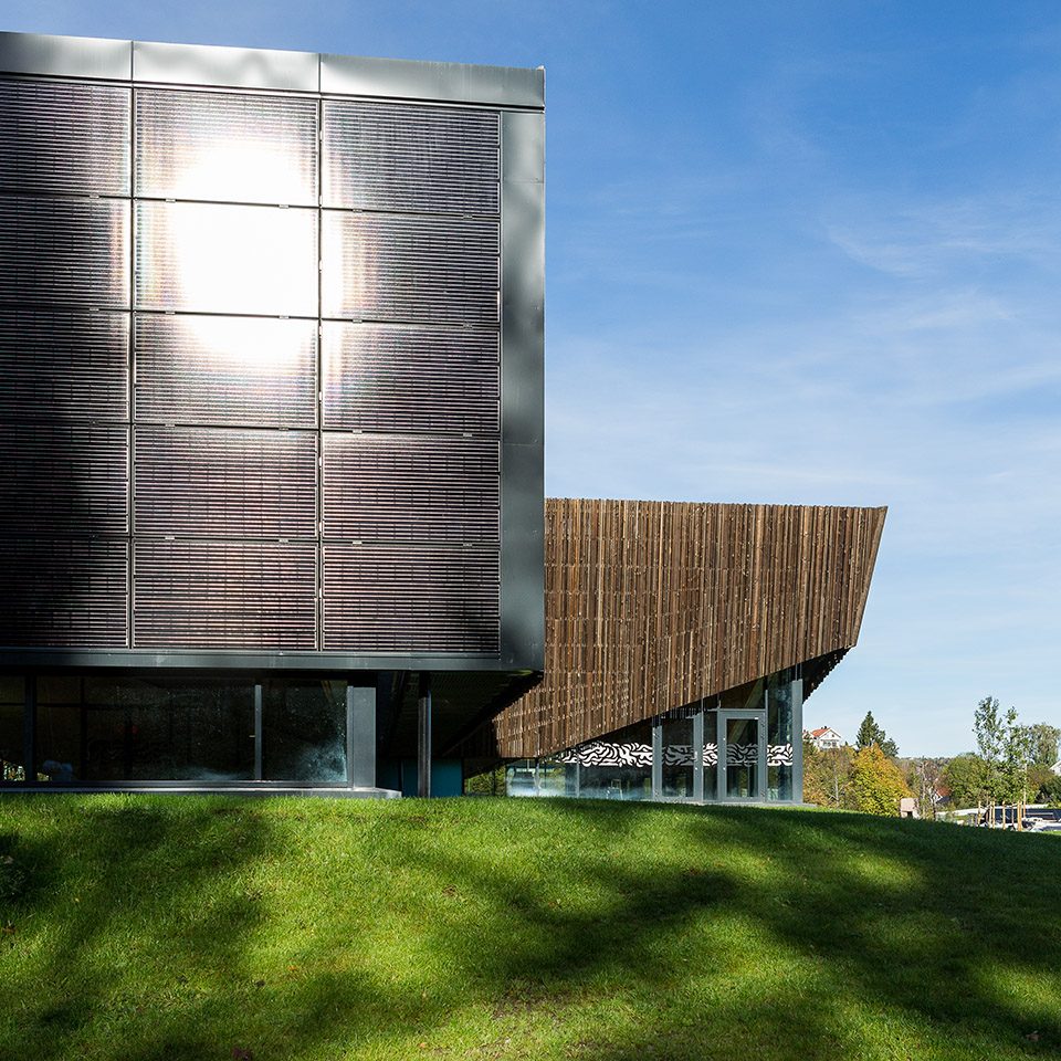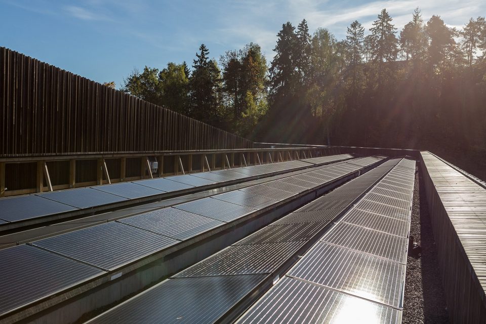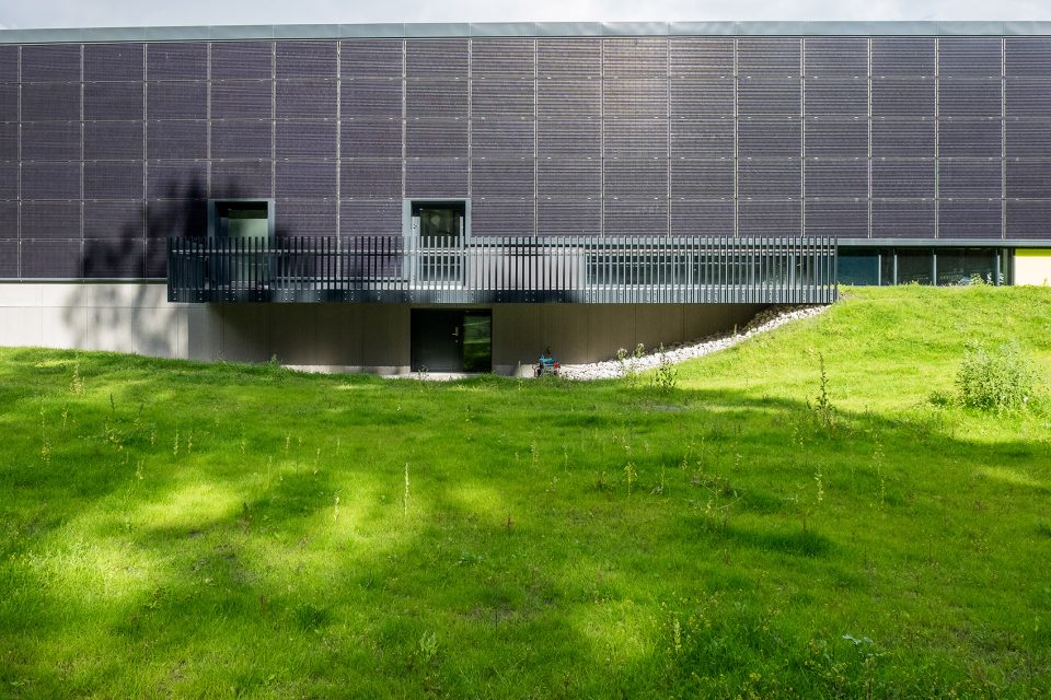 被動式的設計使建筑在能源利用方面變得更加高效,具體體現(xiàn)在建造方法、隔熱層和建筑形式上。除此之外,設計還強調(diào)了能源的再利用,其中以熱水供暖最為突出。650平方米的太陽能板和場地中的15個地熱井共同將來自基巖的熱能輸送給建筑,在夏季還能將多余的熱量傳遞到地表下方。