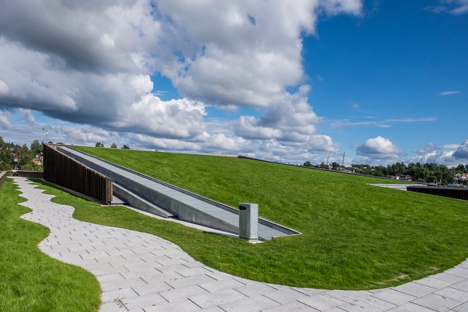 Holmen水上運動中心位于Holmen海灘,這里經(jīng)過填海造陸,保護和鞏固了場地的自然屬性。整個場地被花園覆蓋,為海灘帶來非凡的美景。該項目旨在活化建筑的屋頂,使之成為海灘休閑區(qū)域的一部分。鋪滿植被的屋頂向南面傾斜,在Oslo fjord的群島和礁石之上形成連續(xù)不斷的景觀。主入口、接待處、更衣室和游泳池皆位于建筑的主樓層,凌駕于向建筑方向傾斜的草坪之上。低處的樓層則容納了體育館、多功能廳、設備間以及辦公設施等。