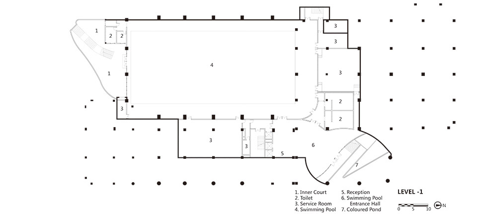 我們希望通過這個項目喚起我們的父輩及下一代的歸宿感。農(nóng)業(yè)生產(chǎn)是那個時代“集體式生活”的標(biāo)志,自然地貌便是這一代人集體記憶的背景。我們通過對建筑空間在“地面”層面上的疊加,再現(xiàn)了自然地貌:在城市層面上,由于本項目地處城市擴(kuò)張的邊界,位于較低的洼地地形,面鄰一個保留的綠化高地,我們在建筑手法上引入一系列上下錯開的水平樓板來使這兩種極端的地貌形成空間上的對話;在建筑尺度,我們轉(zhuǎn)譯了這種拓?fù)潢P(guān)系為一種多層樓板的空間類型,例如地下室空間轉(zhuǎn)折到首層入口層,接著又垂直延伸到二層空間,并不斷交錯向上;在細(xì)部層面,我們使用了木紋鋁方通遮陽板系統(tǒng)將豐富的地景引入到室內(nèi),是對本土的竹材結(jié)構(gòu)建筑形制所做出的回應(yīng)。