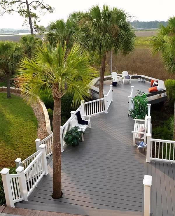當(dāng)然了,木平臺甲板的設(shè)計(jì)風(fēng)格任由設(shè)計(jì)師發(fā)揮,可以通過添加樹木或綠廊,甲板的設(shè)計(jì)有很多種方式,下面這些案例你可以根據(jù)自己口味來重新設(shè)計(jì),現(xiàn)在開始吧,一起看看!