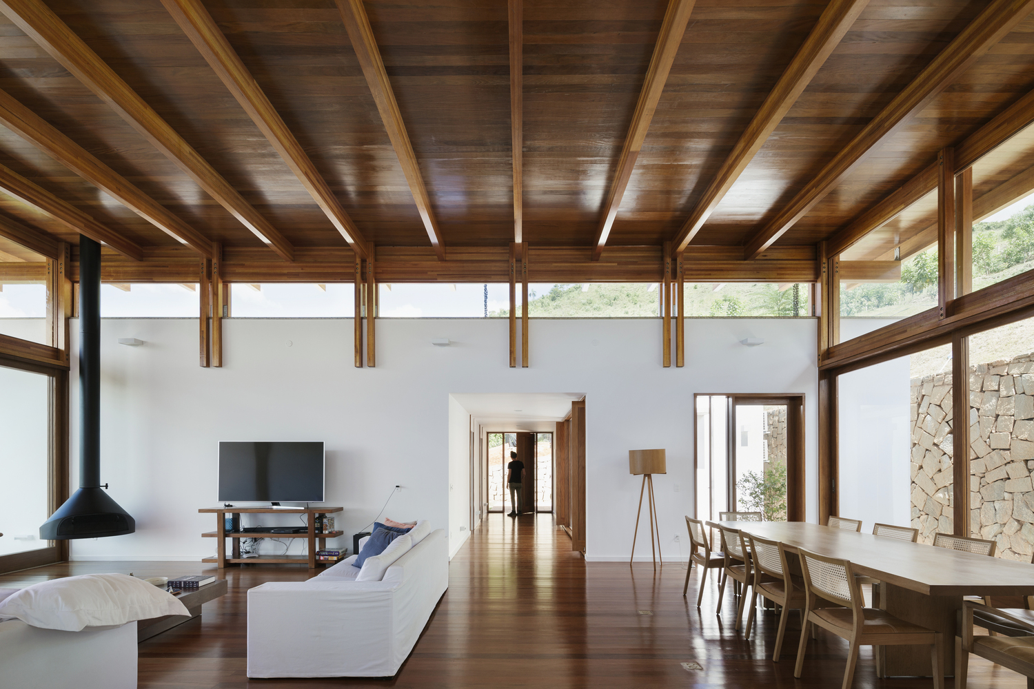 在中庭中,外部與內(nèi)部的聯(lián)系逐漸增強(qiáng),結(jié)構(gòu)從其他房間生長出的遮蓋構(gòu)件亦如是。磚石平面中吸引人的木質(zhì)細(xì)部,除了能夠儲(chǔ)存建造過程的記憶,反應(yīng)混凝土柱的支撐桿以外,還可以將光線引入入口,以及增強(qiáng)對外部空間的感知。其中的空間,從最外部到最內(nèi)部,采用了方形的外觀。幾乎全部的外部空間,幾乎全部的內(nèi)部空間。光線,空氣,人群以及景觀互相互動(dòng)。
