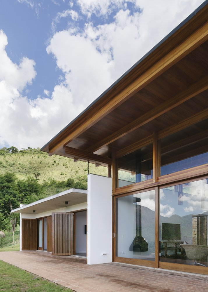 這些方案的連接形成結(jié)構(gòu)軸心,創(chuàng)造了兩條連接到外部的路徑:縱向的軸可以變?yōu)榻^美的外部景觀,至于另一條橫向的軸線,則可以明確表現(xiàn)出多種多樣的交叉路口和配制出房屋的居住形式的環(huán)境。單層的構(gòu)造再一次確保了環(huán)境之間連續(xù)性以及內(nèi)外空間連續(xù)性的這一前提。通過擴(kuò)展房屋在同一區(qū)域中的所有內(nèi)在應(yīng)用,探索不同的地塊應(yīng)用與體驗(yàn)得以成為可能。或是在內(nèi),或是在外。只有在游泳池的位置有一處樓層平面變化,其被兩個(gè)臥室側(cè)廳的厚片所整平。