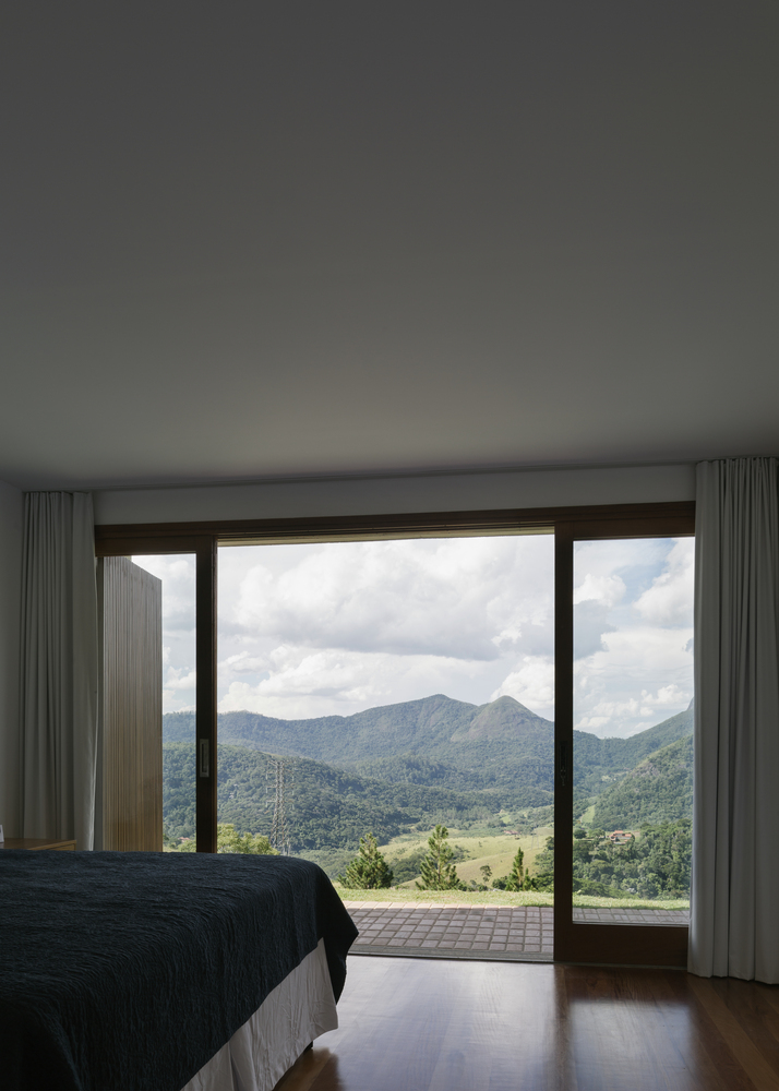 “蒙特堡”這一設(shè)計(jì)的內(nèi)在條件是建筑中最原始的一種主題——工程與景觀之間的關(guān)系。因?yàn)轫?xiàng)目位于山頂,建筑師通過感知景觀的地平線與建筑工程外輪廓之間不確定的邊界而探索這一主題。作為一個(gè)前提,給住房進(jìn)行空間塑形的結(jié)構(gòu)從五個(gè)平行板的位置出現(xiàn),它們之間的間距決定了該項(xiàng)目的功能和結(jié)構(gòu)特性。